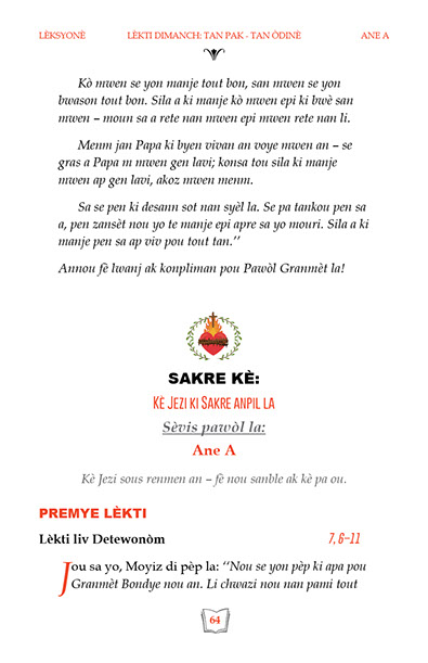 Liv sa genyen lèkti ak levanjil lamès chak dimanch Tan Pak - Tan Òdinè - Ane A. Yon bon Gid pou tout kretyen Katolik.